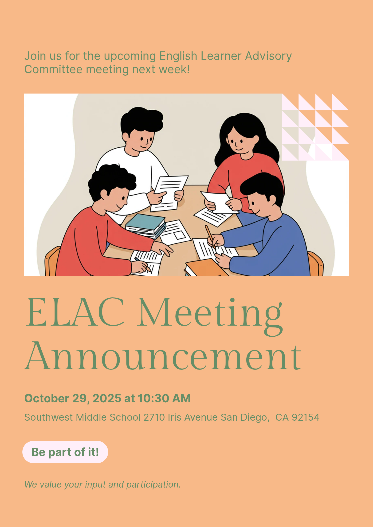 ELAC Meeting Next Wednesday